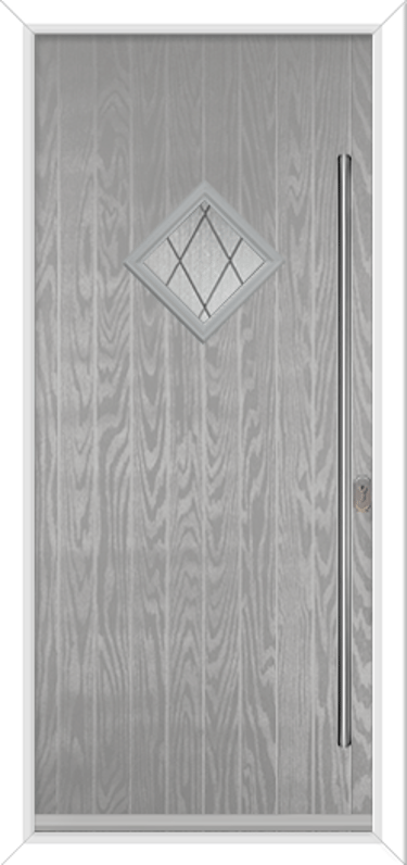 A cottage style composite front door with a diamond shaped glass panel which is available to order for shorter or narrow entrance ways. Our range of Mini Solidcore or Mini Timberlike Doors are designed to compliment your home. Small composite doors are bespoke to your style and made to measure. Choose the colour, hardware, security and design for your small composite door.